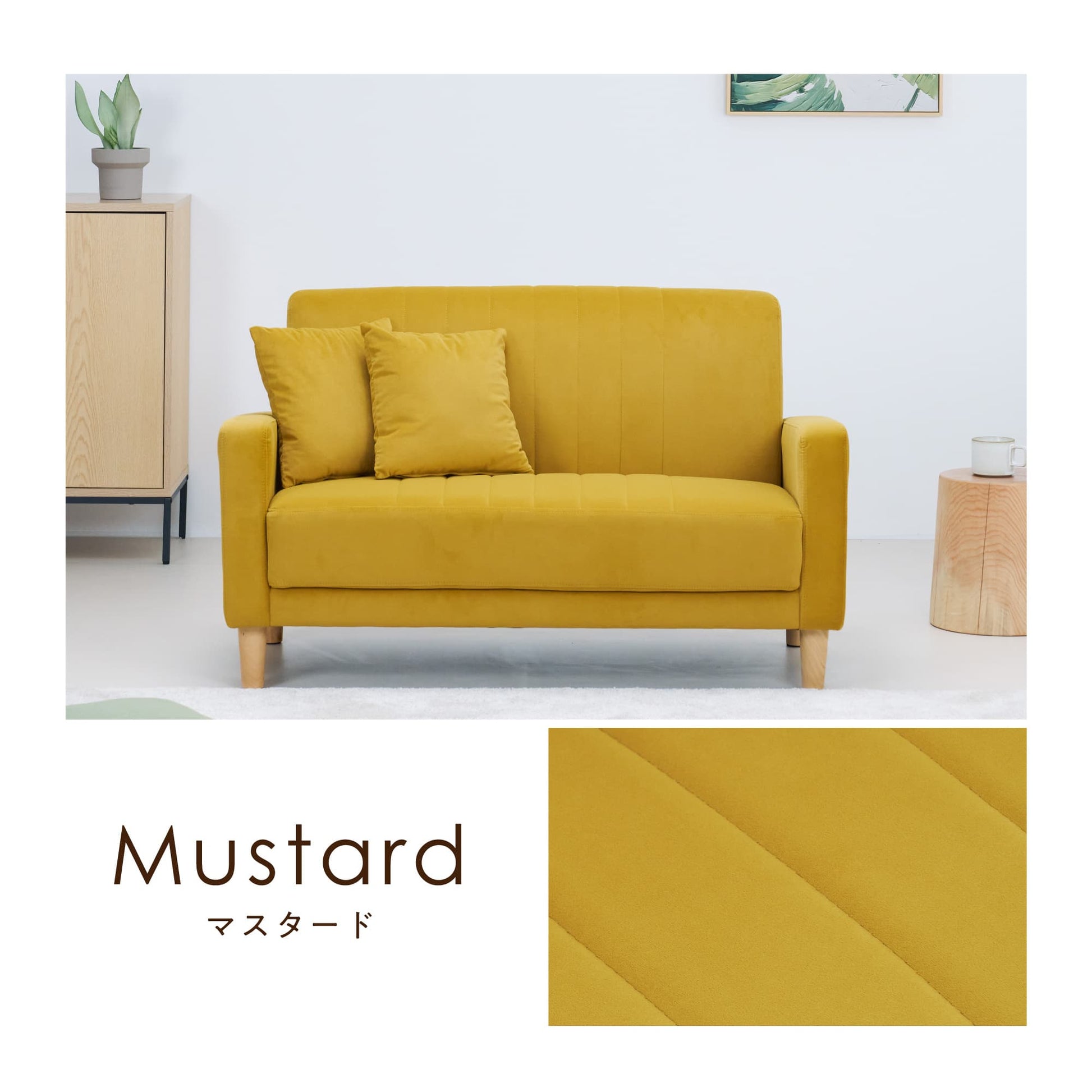 脚部には自然の温かみを感じられる天然木を贅沢に使用。木目模様の美しさが際立つテクスチャーが、柔らかなベロアファブリックの印象を引き締め、ソファ全体に上質さをプラスします。お部屋の雰囲気をワンランクアップさせるアクセントに。