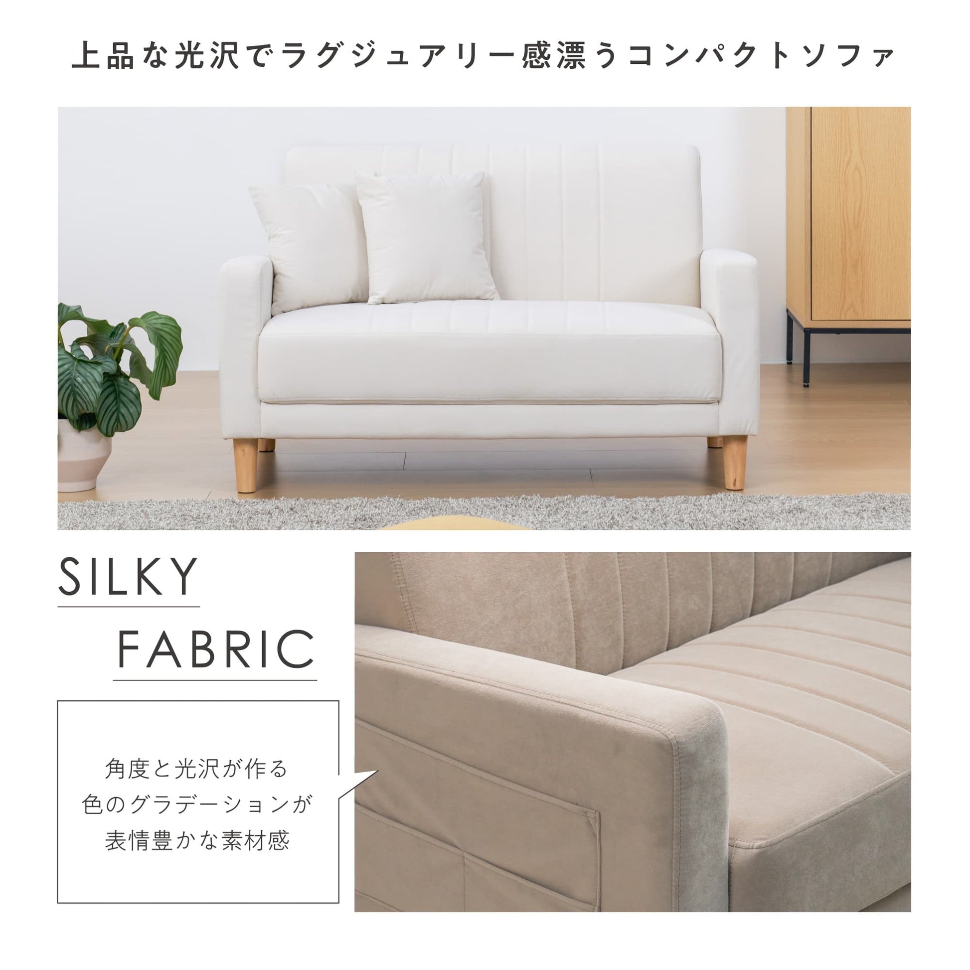 滑らかな艶でラグジュアリー感漂うコンパクトソファ