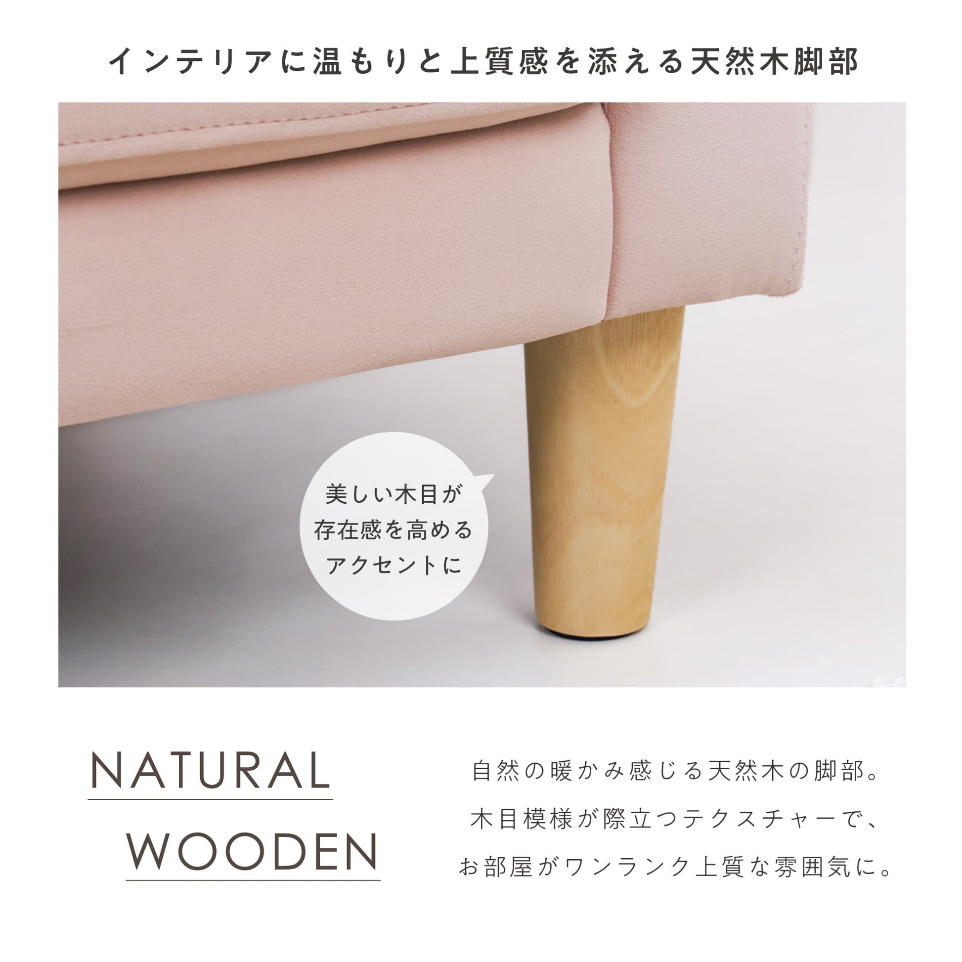 脚は木の温もりを感じる天然木仕様
