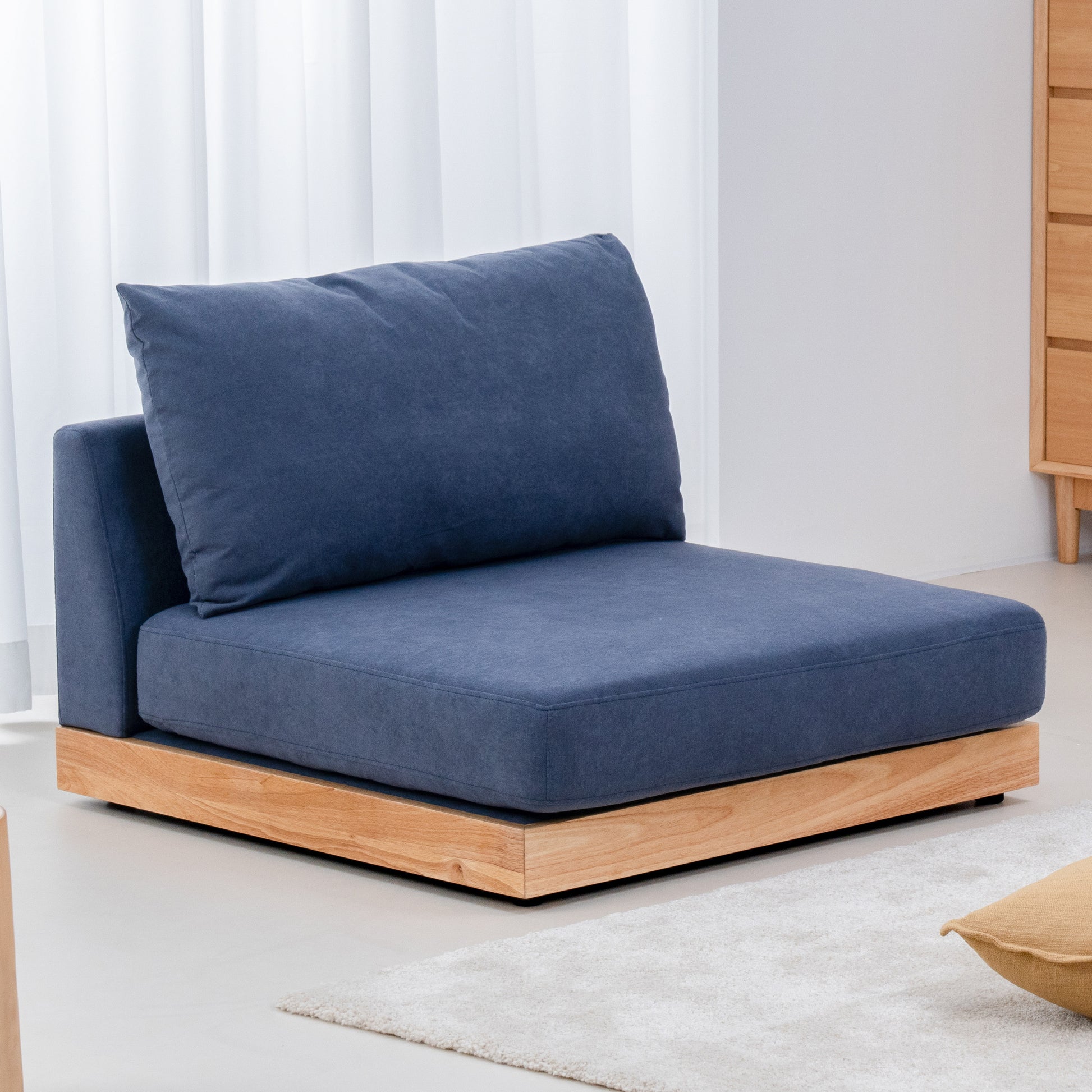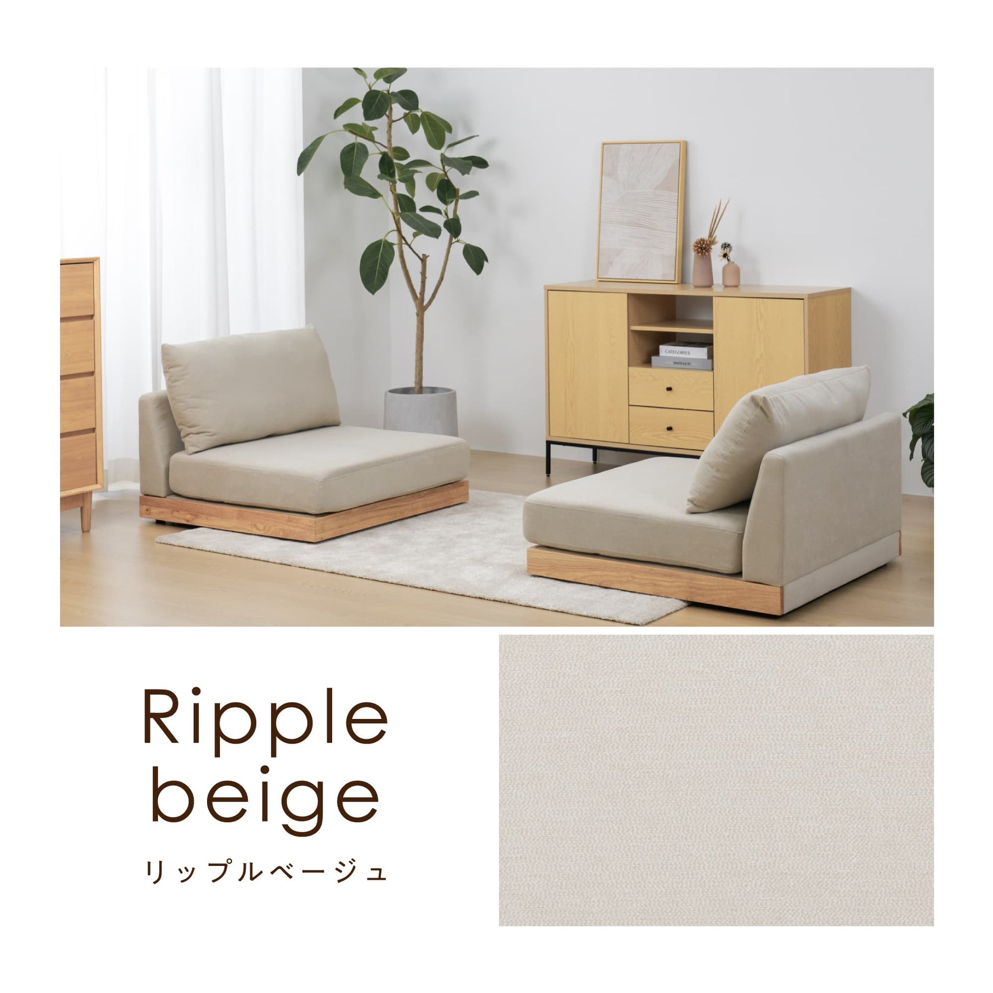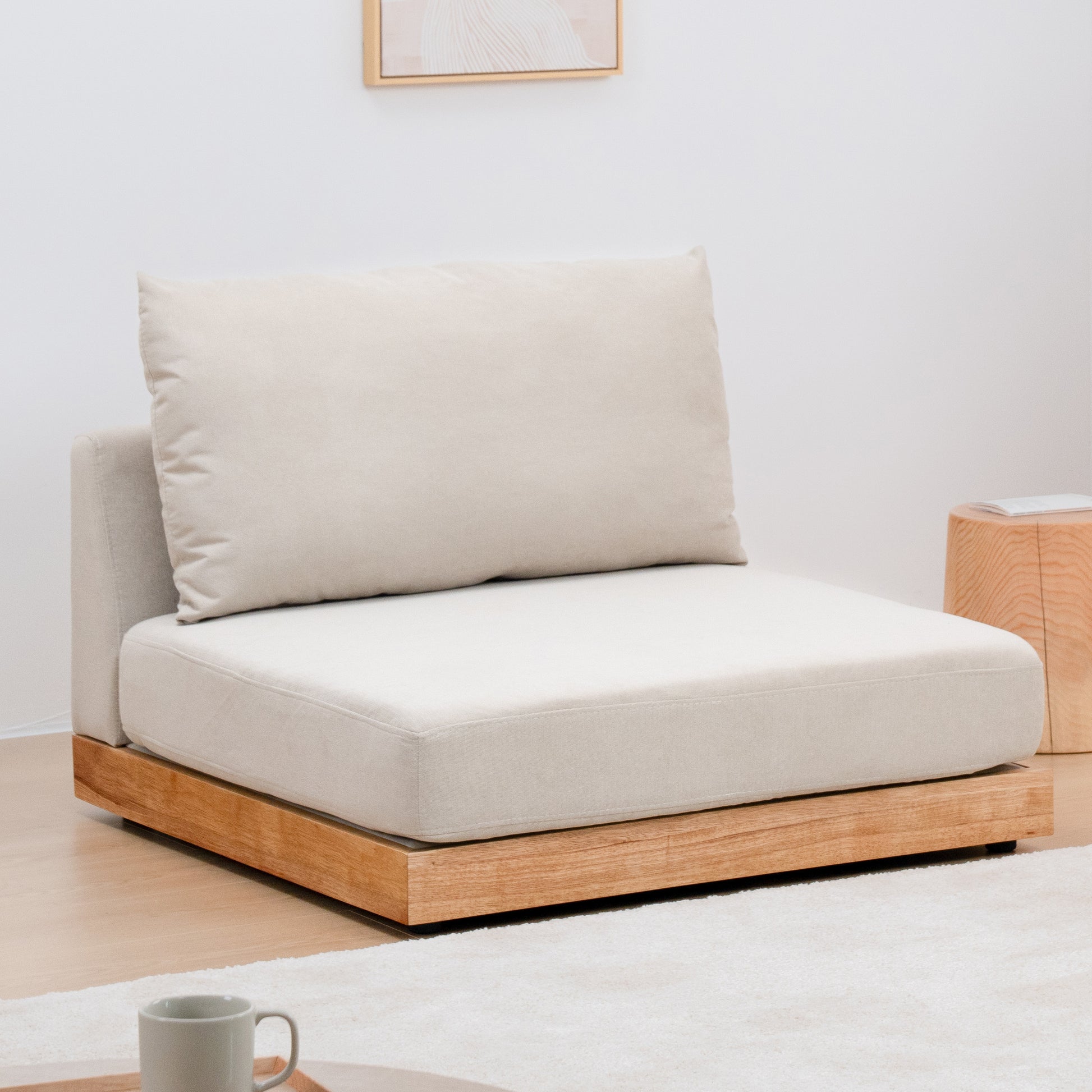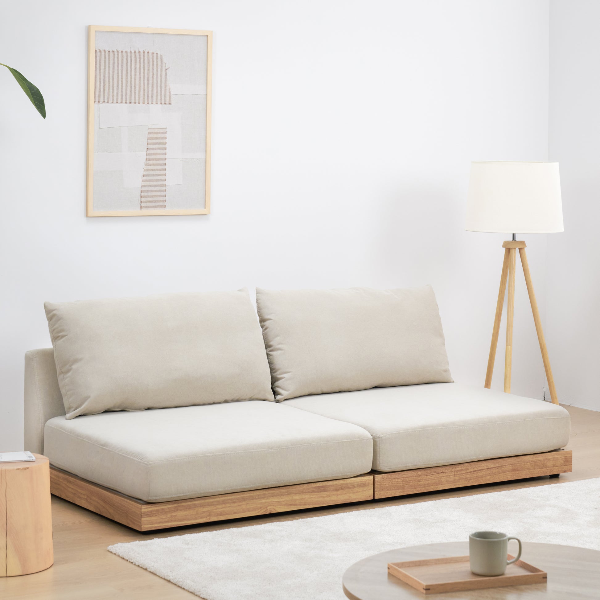 おうち時間をより快適に過ごせるよう、ロータイプのデザインにしました。視覚的にお部屋を広く見せる効果があり、リラックスした雰囲気を演出します。別売りの木脚を取り付けることで、さらに異なるスタイルを楽しむことも可能です。