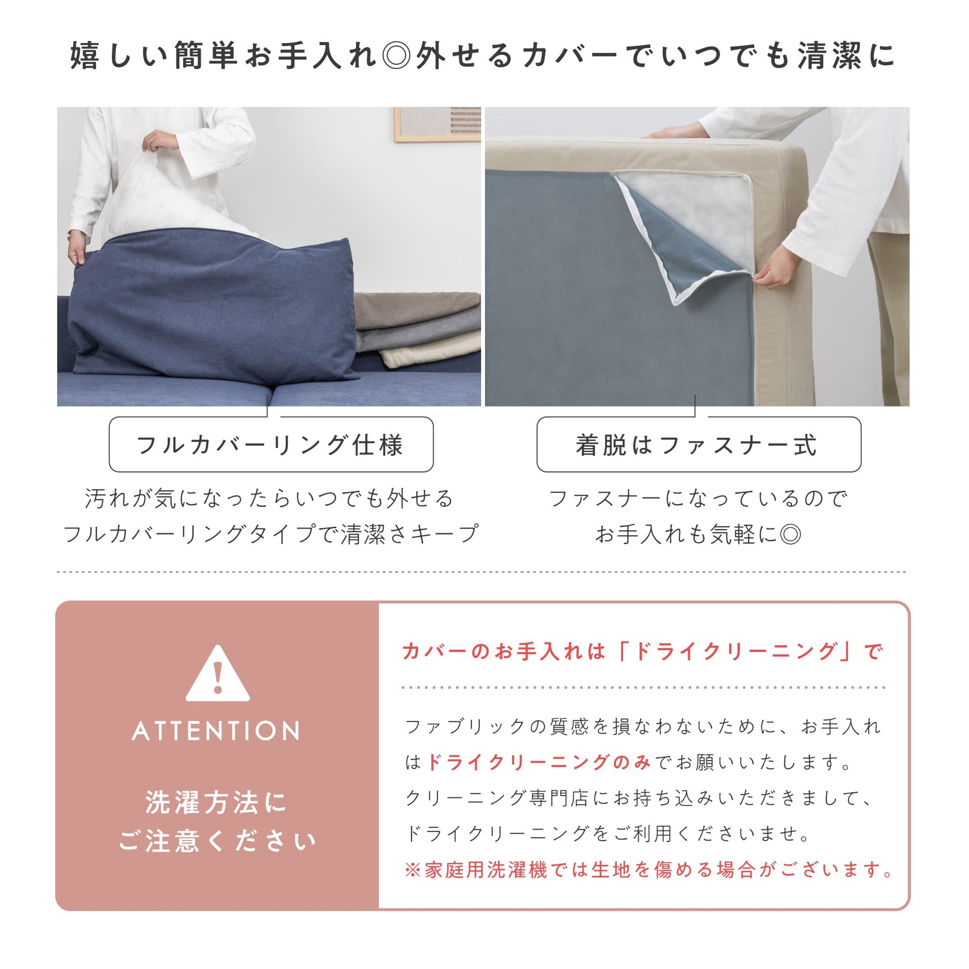 お手入れ簡単なカバーリング使用