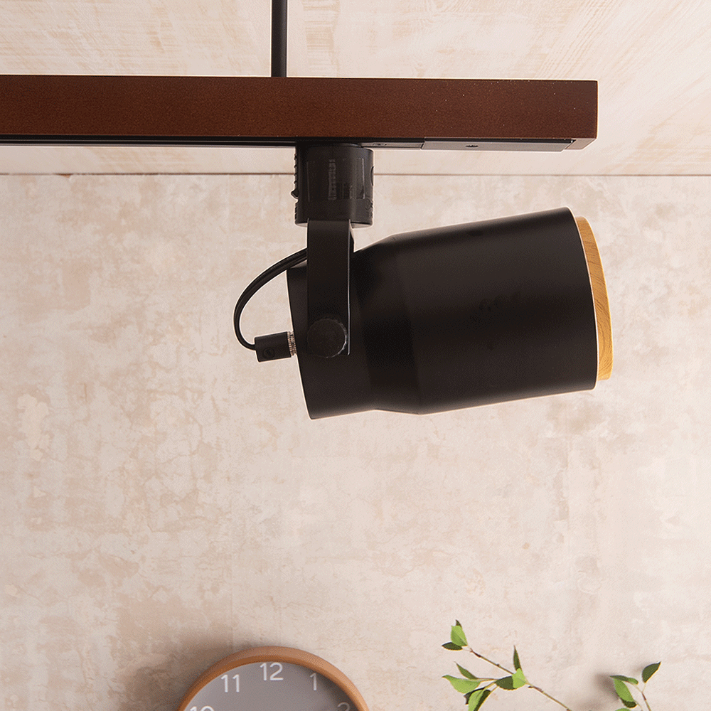 シンプルだけど存在感のあるおしゃれなダクトレール用スポットライト。無地なシェードにアクセントとなる木目のパーツを加えるだけの、飽きがこないモダンでスタイリッシュな印象です。 木調を主張しすぎない分、どんなインテリアにも馴染みやすく、いつまでもあたたかく、程よく日々の暮らしをおしゃれに照らしてくれます。