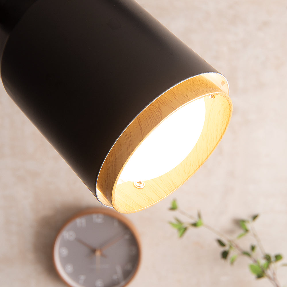 全体の高さ255mm。筒状になったコンパクトなスポットライト。狙ったところをしっかり照らします。 カラーはシックな印象のブラック・ブラウンと北欧風インテリアにもバッチリのホワイト・ナチュラルの2色をご用意。インテリアやお部屋の雰囲気に合わせてお選び下さい。