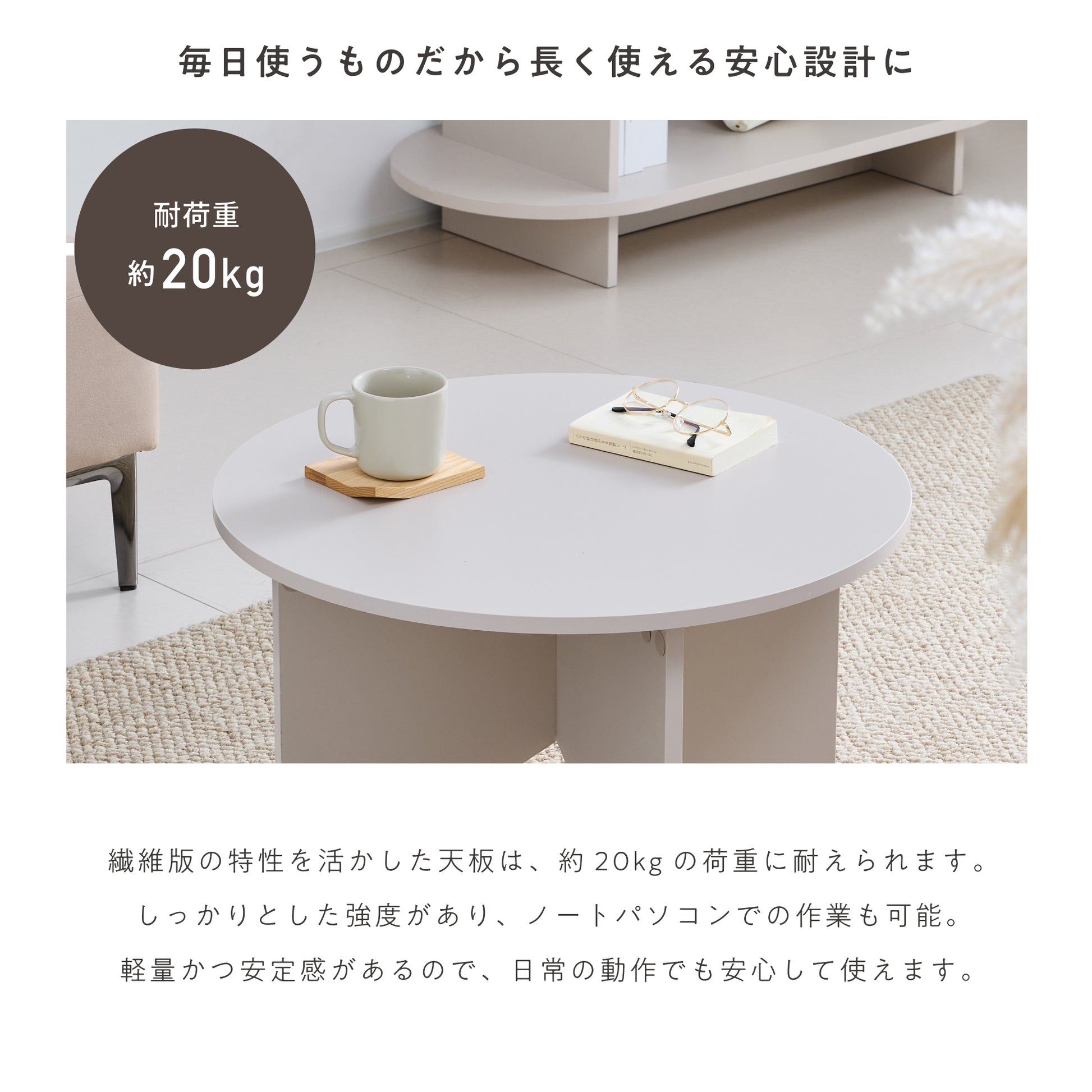 繊維板の特性を活かした素材と構造で、軽量ながら約20kgの荷重に耐えられる天板を採用。しっかりとした強度があり、ノートパソコンを置いて作業することも可能。日常の動作でも安心して使える、頼れるローテーブルです。