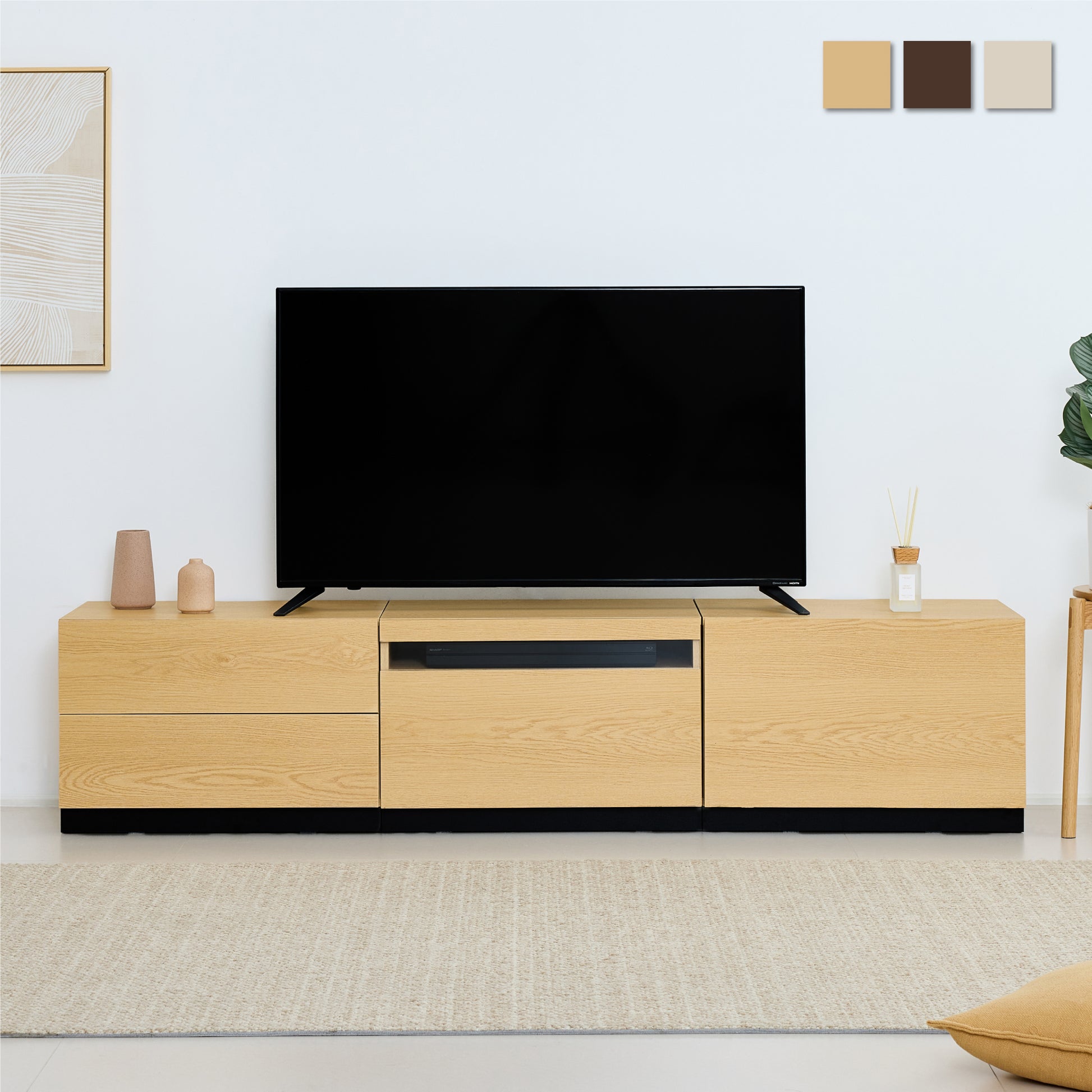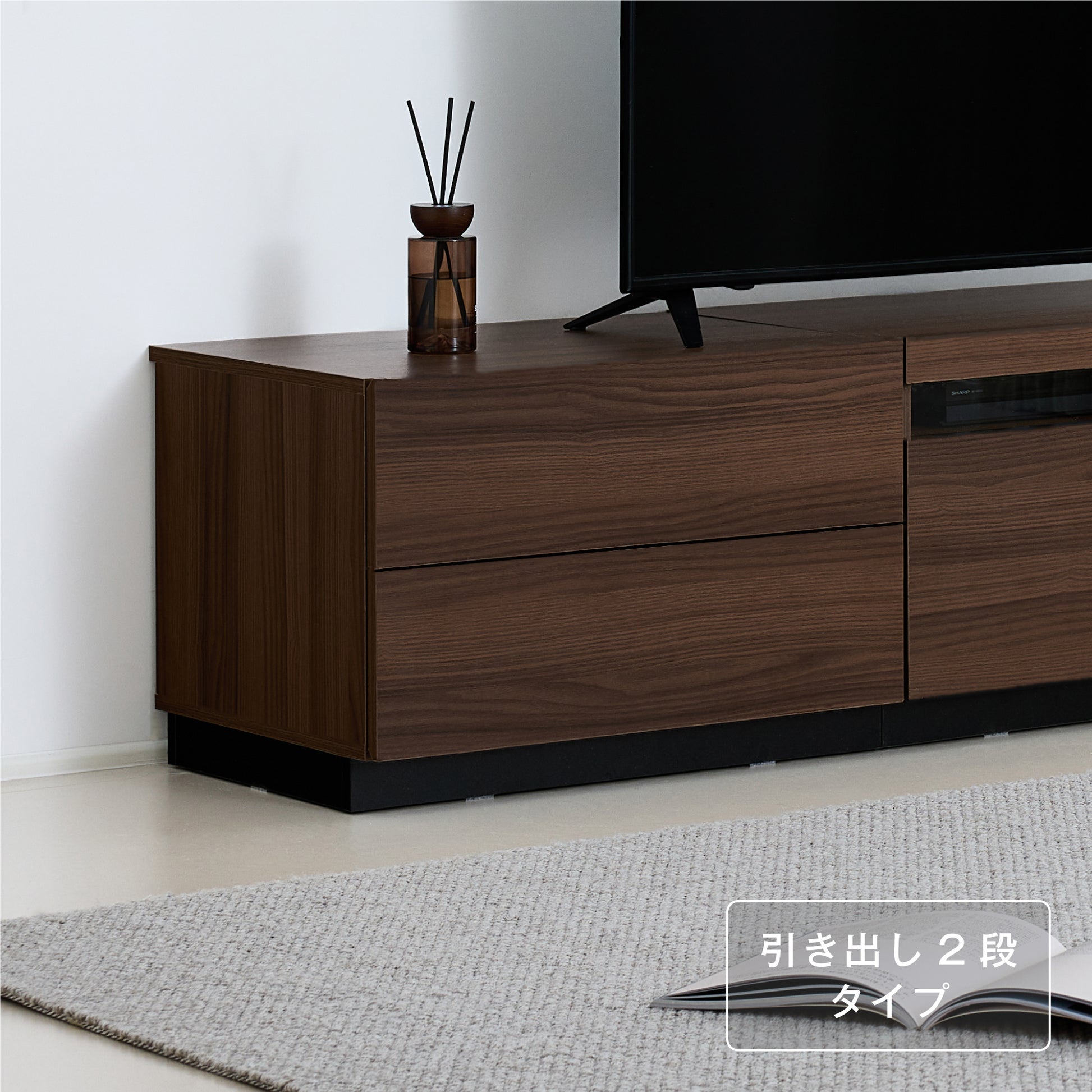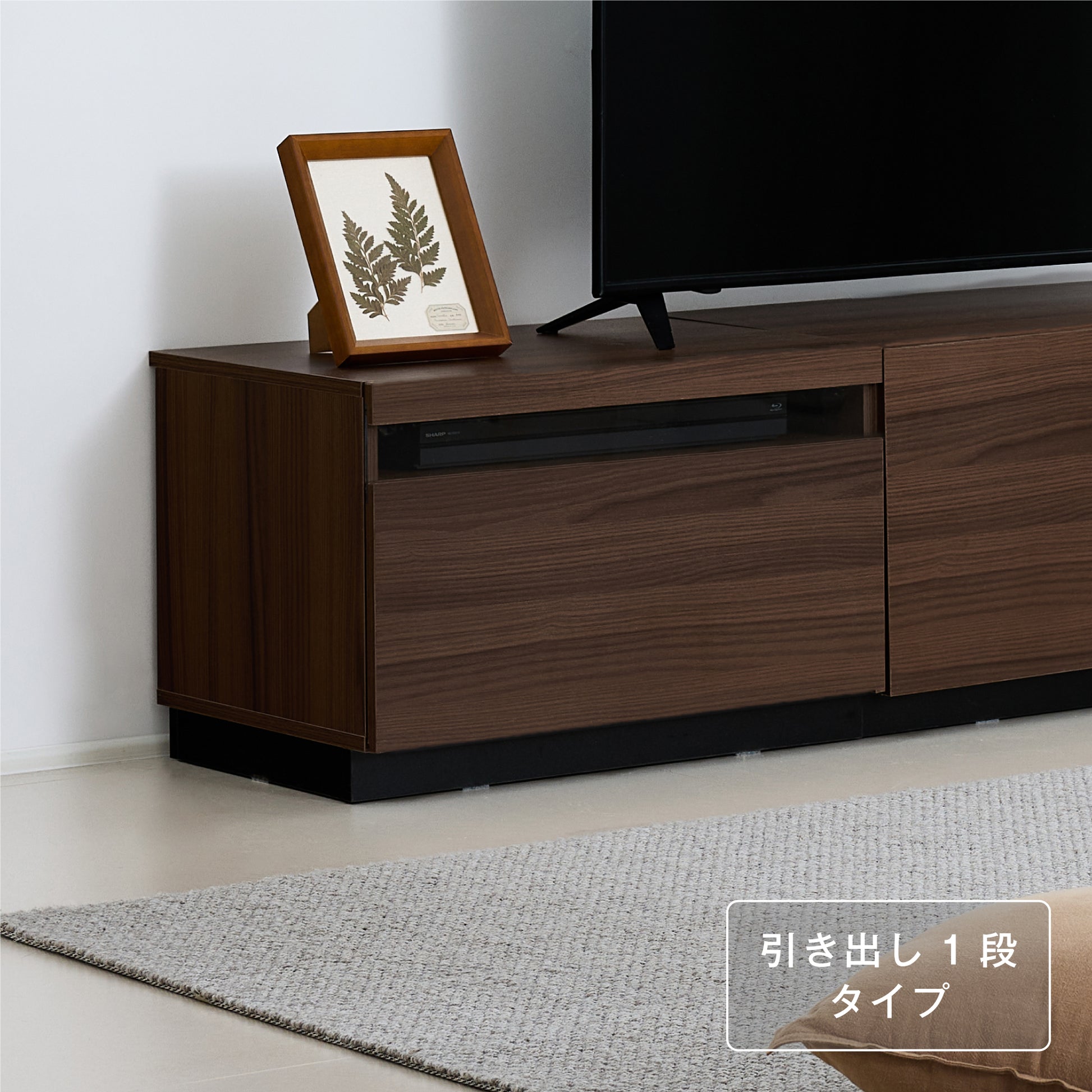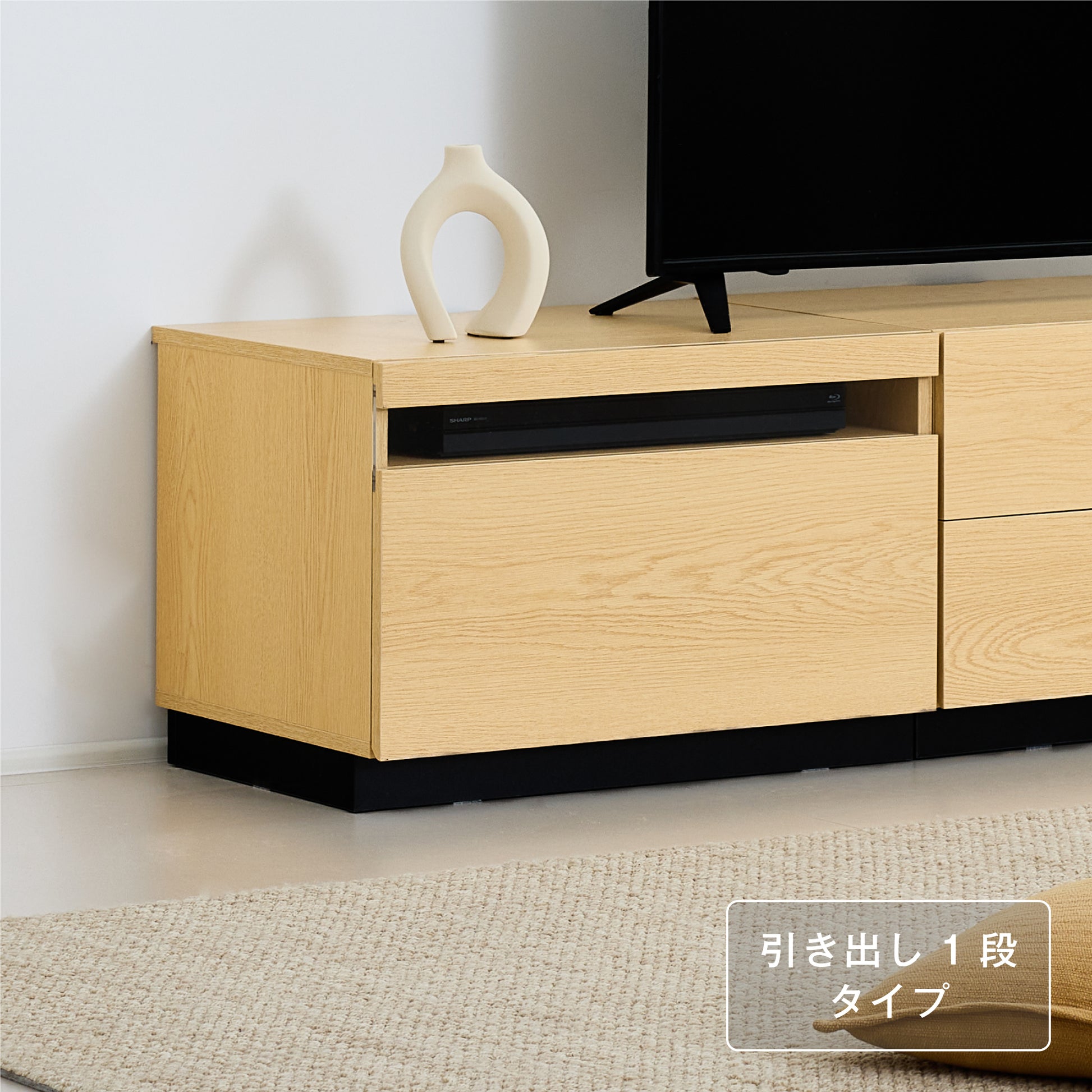3つの異なる収納タイプを自由に組み合わせ、理想のテレビボードを実現できるよう設計しました。引き出し1段、引き出し2段、フラップ扉の3タイプは、お好みや収納ニーズに応じて自在に配置可能で、組み合わせて使えば幅は最大約180cmまで拡張可能です。単品・セットのどちらでもお選びいただけます。単品でもディスプレイ棚として使えるので、お部屋や使い方に合わせてぴったりのスタイルをお選びください。