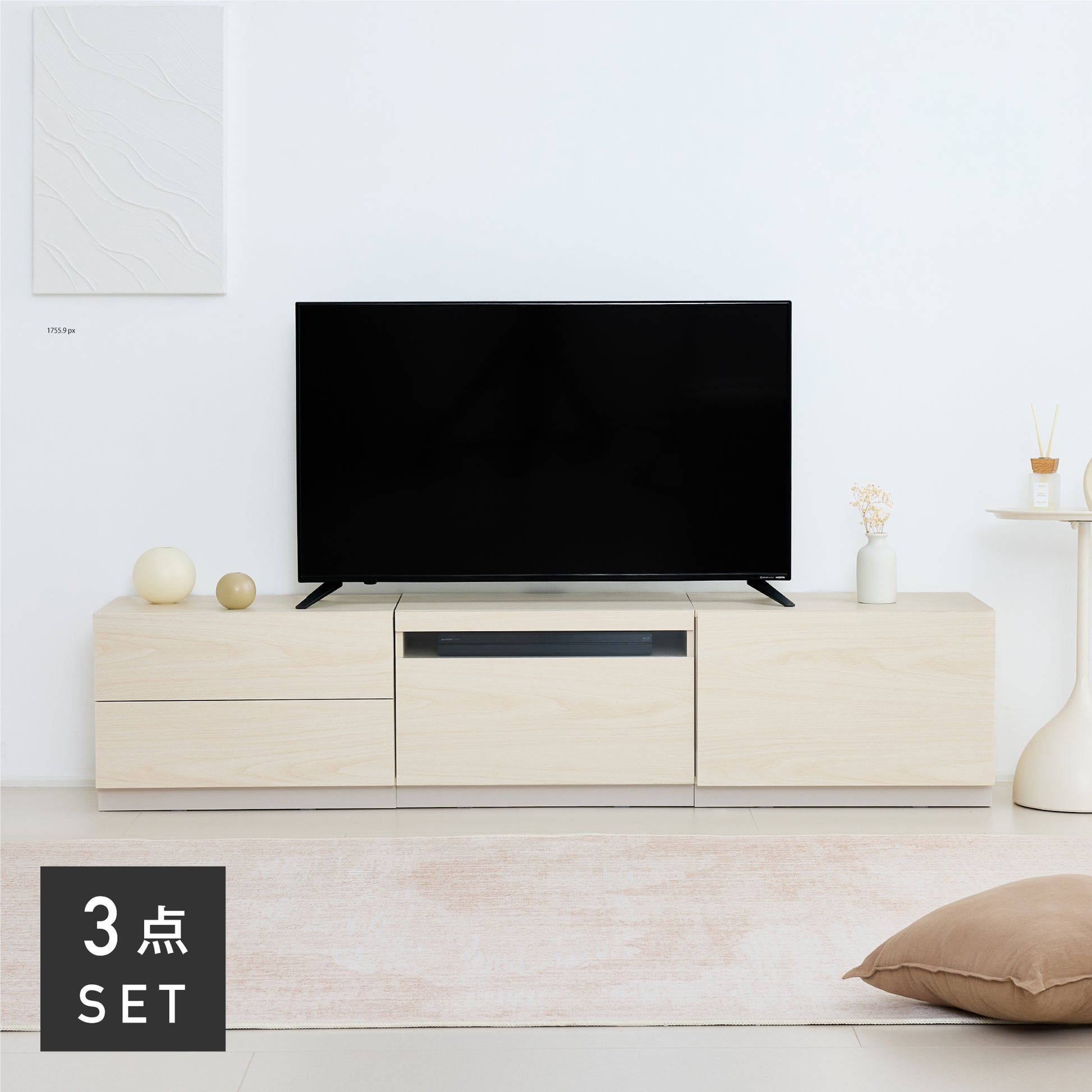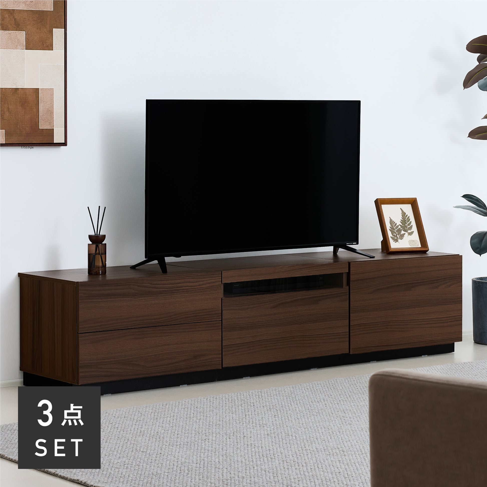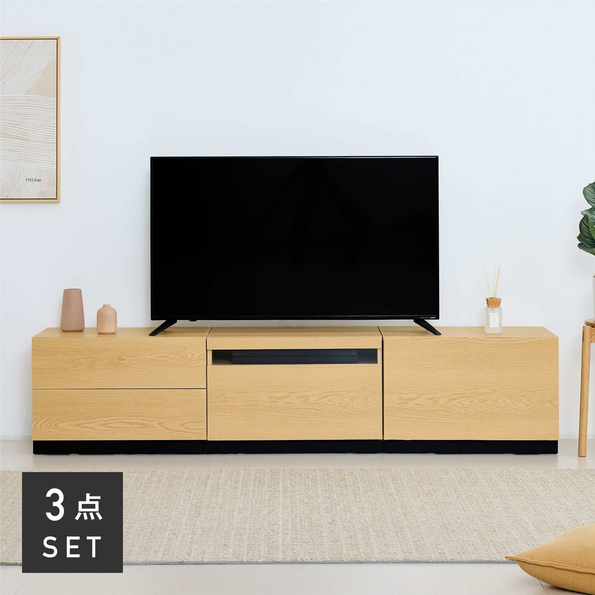 全て揃った3点セットだから、どれを買えばいいか迷うこともなく安心。引き出し1段、2段、フラップ扉の3タイプを組み合わせるだけで、1人暮らしのリビングから家族団らんのリビングまで、ぴったりのテレビボードを実現。さらに、各ユニットは単品でもディスプレイ棚や収納として活用でき、使い方の自由度も広がります。
